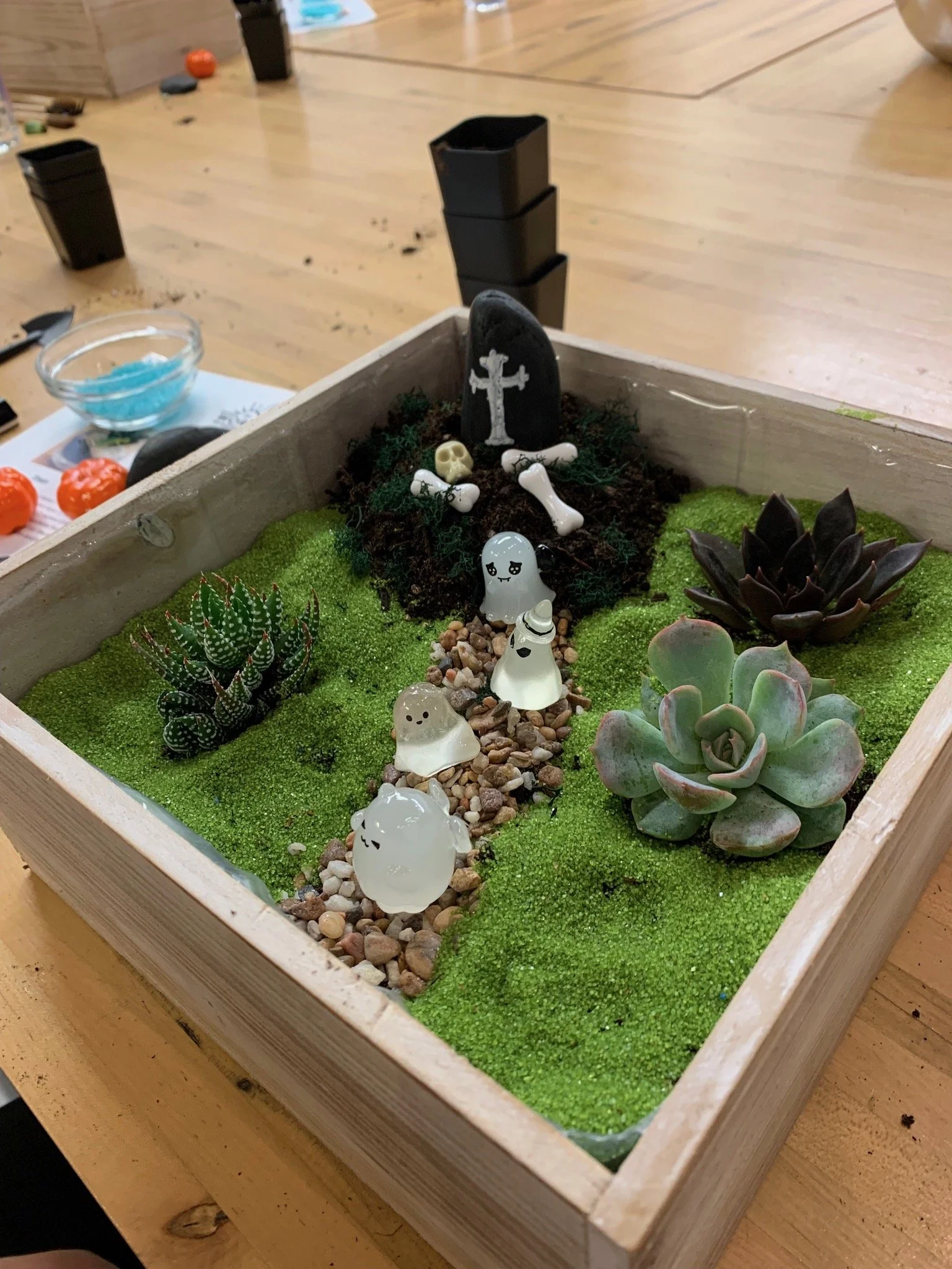We’ll provide everything you need, including a vessel, soil, sand, rocks, a variety of plants, and loads of spooky creatures to add some flair