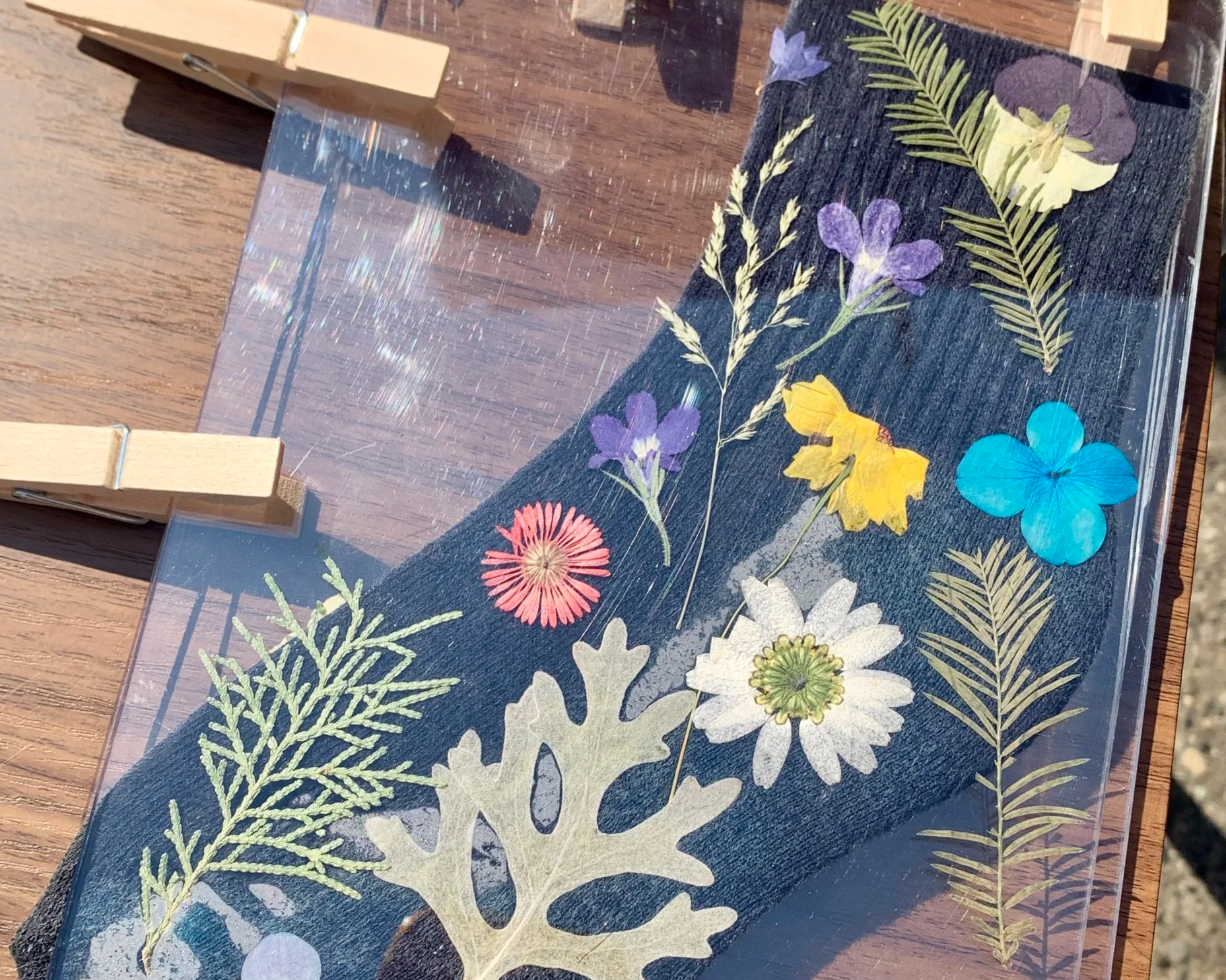 Get hands-on: apply the light-sensitive solution, arrange botanicals to create your design, expose it to the sun, and rinse to reveal your print