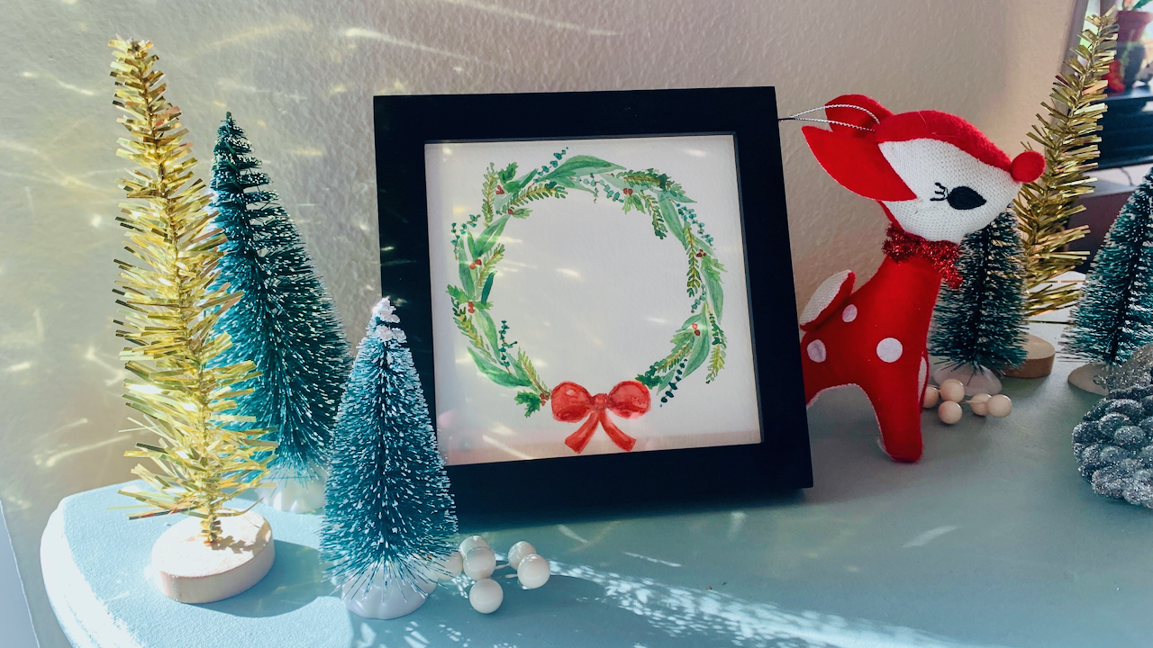 Step into the holiday spirit and learn how to paint an everlasting holiday wreath using watercolors! Perfect to frame and display on your mantle or to wrap up as a heartfelt handmade gift.